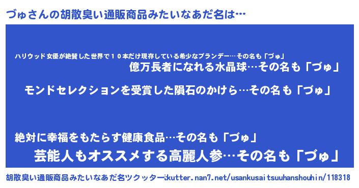 | ヒーロー風カッコイイあだ名 | 『慈愛の使者づゅ』『仮面ヅュダー』 |