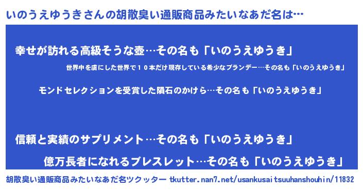 | 意味不明あだ名 | 『眠気覚ましガムいのうえゆうき味』 |