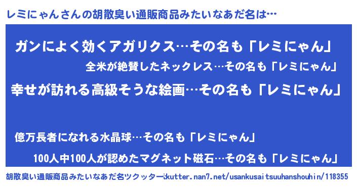 | 男性向けラノベタイトル風あだ名 | 『やはりレミにゃんの青春ラブコメはまちがっている 』 |