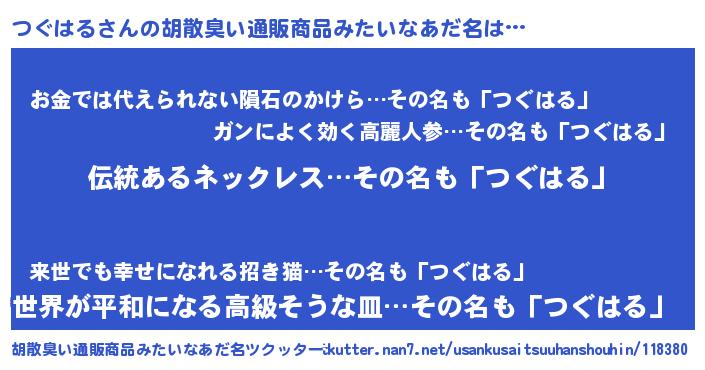 | 意味不明あだ名 | 『とにかく怪しいつぐはる』 |
