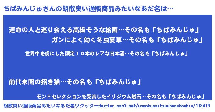 | 意味不明あだ名 | 『住所不定無職ちばみんじゅ(47歳)』 |