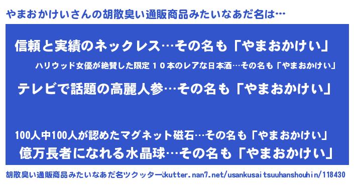 | 意味不明あだ名 | 『自称やまおかけい』 |