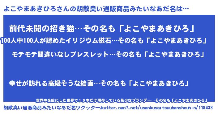 | ヘコむあだ名 | 『よこふぇ~』『よこやまあきひろ(遠い目)』 |