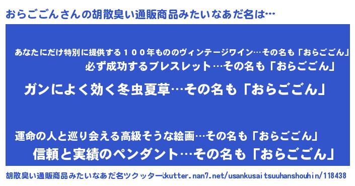 | 女子向けラノベタイトル風あだ名 | 『おらごごんアンティーク』 |