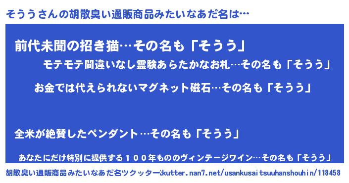 | ヒーロー風カッコイイあだ名 | 『愛の使者そうう』『ネオソウウ』 |