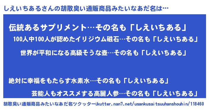 | ヘコむあだ名 | 『なまこ酢』『しえっ子』 |