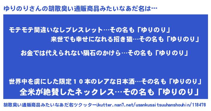 | ヘコむあだ名 | 『ゆりっふぃ~』『ゆり太郎』 |