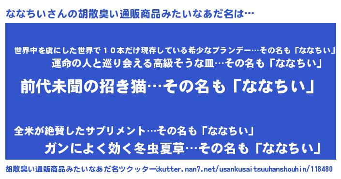 | 意味不明あだ名 | 『永久保存ななちい』『自称ななちい』 |