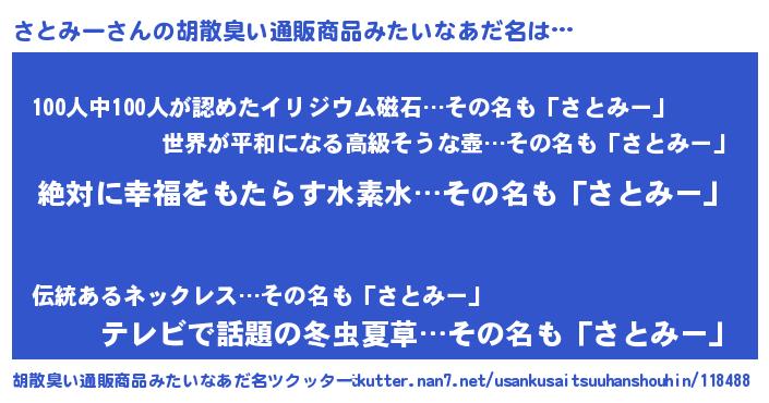 | ヒーロー風カッコイイあだ名 | 『ネオサトミー』『愛の使者さとみー』 |
