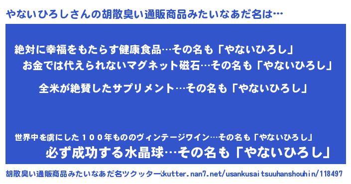 | ポケモン風あだ名 | 『ヒヤナイヒロシ』『ゼニヤナ』 |