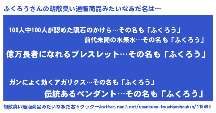 | ポケモン風あだ名 | 『フクチュウ』『フックウザ』 |
