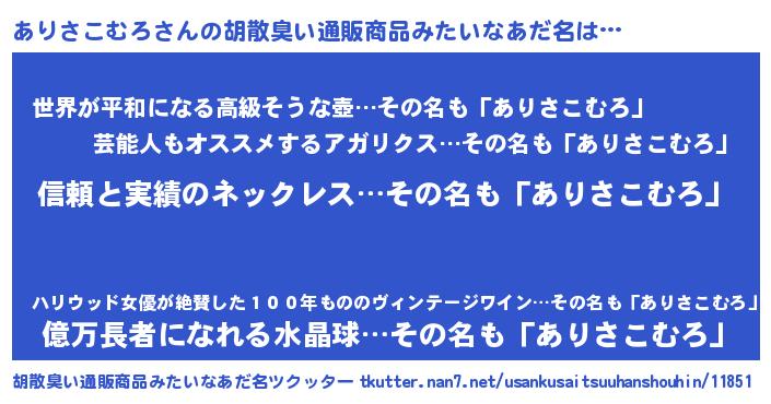 | 意味不明あだ名 | 『とにかく怪しいありさこむろ』 |
