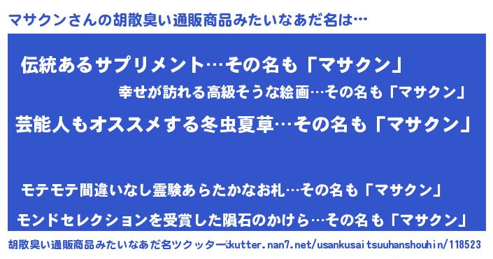 | 意味不明あだ名 | 『自称マサクン』『マサクンフォーエバー』 |