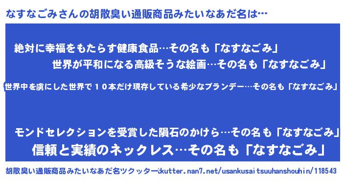 | 意味不明あだ名 | 『住所不定無職なすなごみ(74歳)』 |