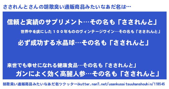 | 意味不明あだ名 | 『ペロリンさされんと』『自称さされんと』 |