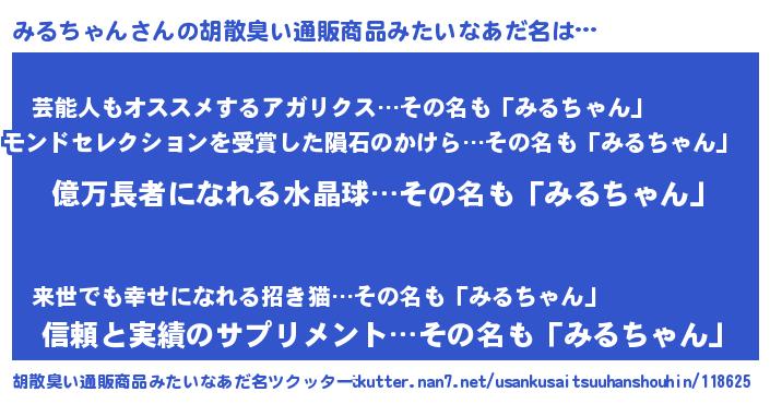 | ヘコむあだ名 | 『みるにゅー』『みるっ子』 |