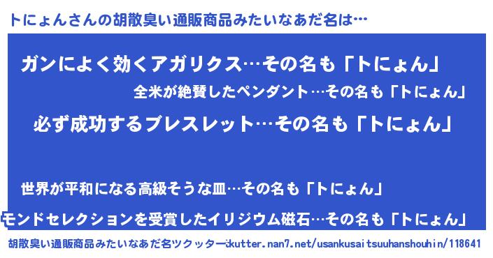 | 意味不明あだ名 | 『ペロリントにょん』『自称トにょん』 |