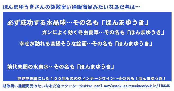 | 男性向けラノベタイトル風あだ名 | 『やはりほんまゆうきの青春ラブコメはまちがっている 』 |