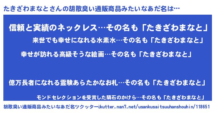 | 意味不明あだ名 | 『たきざわまなとフォーエバー』 |