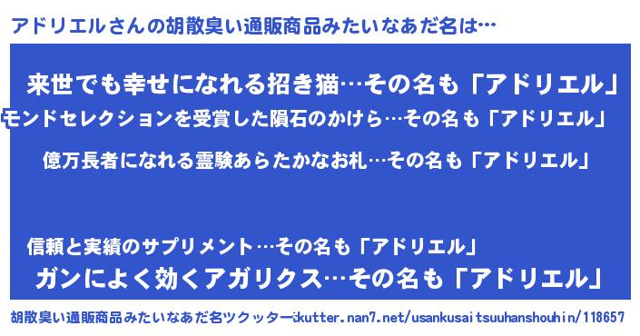 | 恥ずかしいあだ名 | 『プリティーアドリエル』『アドちん』 |