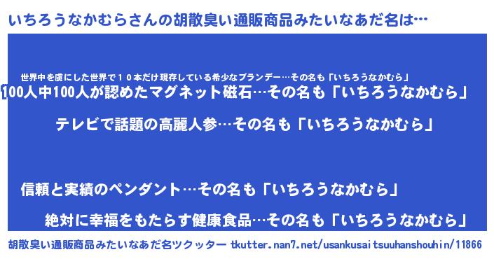 | 意味不明あだ名 | 『自称いちろうなかむら』 |