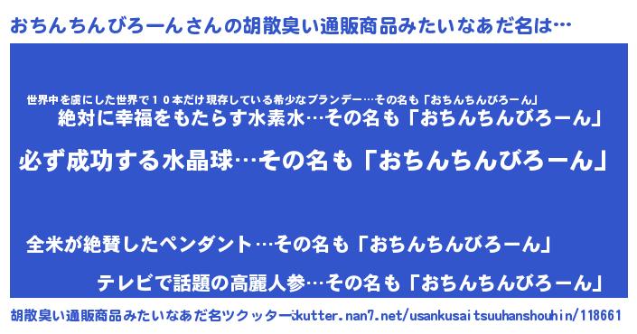 | ヒーロー風カッコイイあだ名 | 『スーパーオチンチンビローン』 |