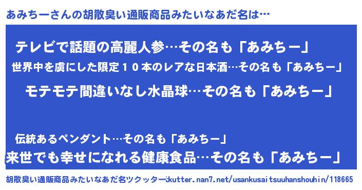 あみちーさんの胡散臭い通販商品みたいなあだ名をツクッター!
