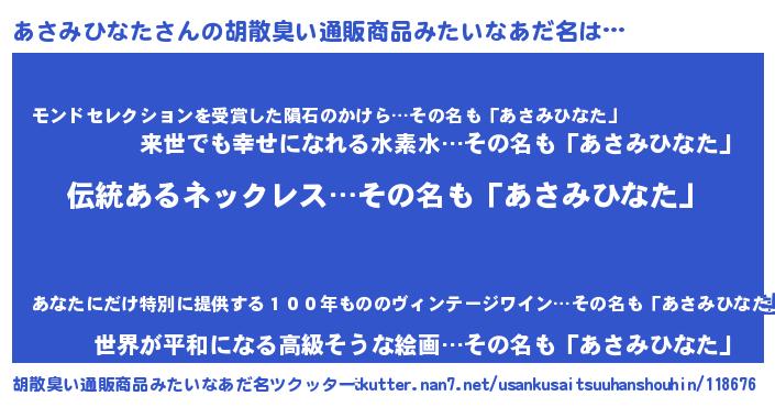 | 意味不明あだ名 | 『とにかく怪しいあさみひなた』 |