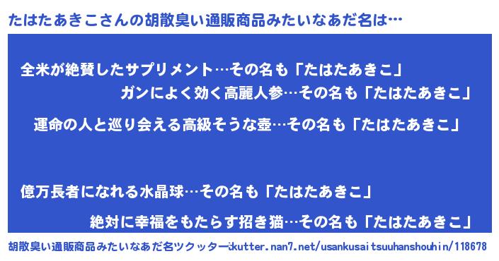 | ポケモン風あだ名 | 『タハタダネ』『ヒタハタアキコ』 |