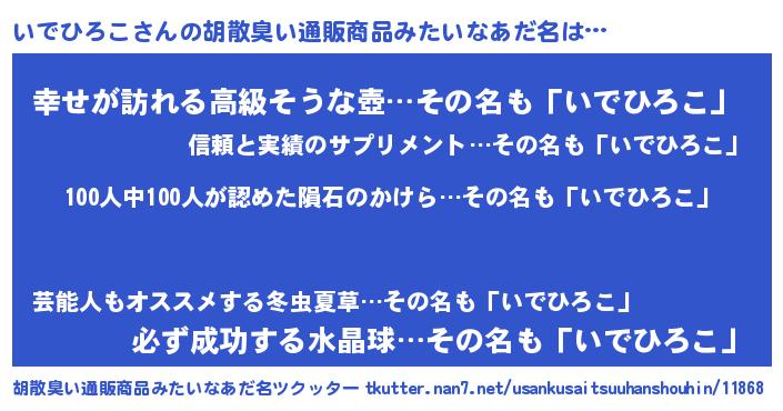| 男性向けラノベタイトル風あだ名 | 『イデヒロコスレイヤー』 |
