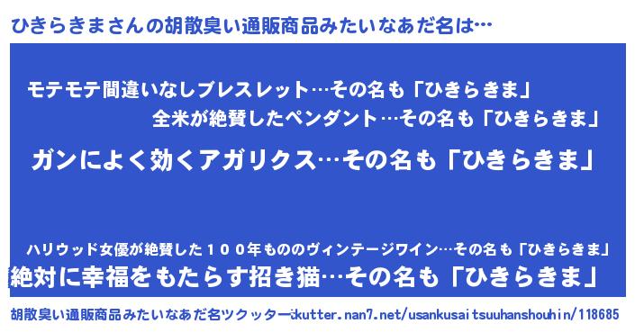 | 女子向けラノベタイトル風あだ名 | 『ひきらきまアンティーク』 |