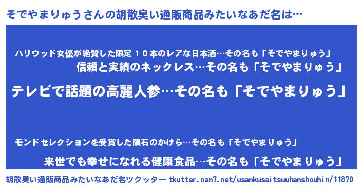 | ヘコむあだ名 | 『そでやまりゅう(笑)』『そでっぺ』 |