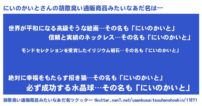 | ポケモン風あだ名 | 『ニックウザ』『ニイノダネ』 |