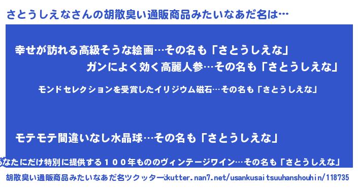| ヒーロー風カッコイイあだ名 | 『慈愛の使者さとうしえな』 |