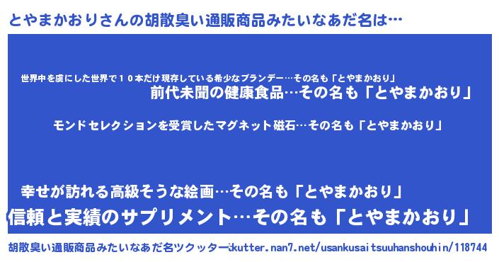 | ヘコむあだ名 | 『とやを』『とやまかおり(笑)』 |