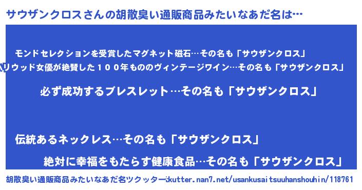 | ヘコむあだ名 | 『サウふぇ~』『サウザンクロス(小並感)』 |