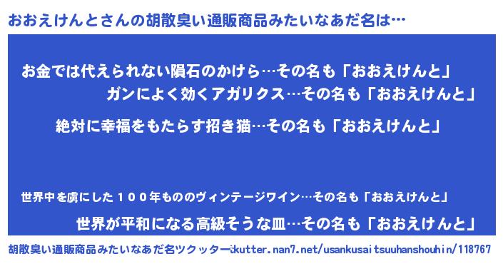 | 意味不明あだ名 | 『永久保存おおえけんと』 |