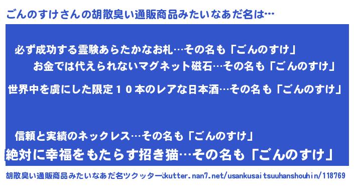 | 意味不明あだ名 | 『住所不定無職ごんのすけ(59歳)』 |