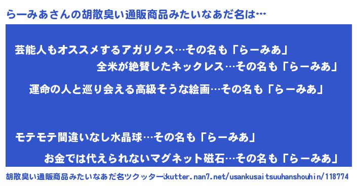 | 肩書あだ名 | 『らーみあ総理大臣』『らーみあ総統』 |