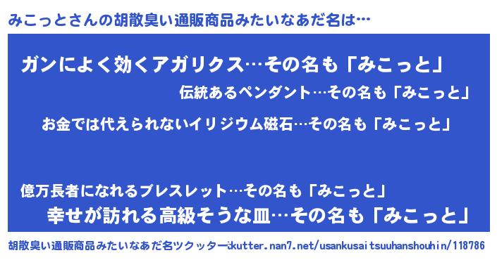 | ヘコむあだ名 | 『豆乳』『みこっぺ』『みこっふぃ~』 |