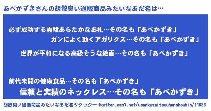 | 意味不明あだ名 | 『あべかずきフォーエバー』 |