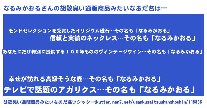 | ヘコむあだ名 | 『なるを』『レバニラ』『なるにゅー』 |