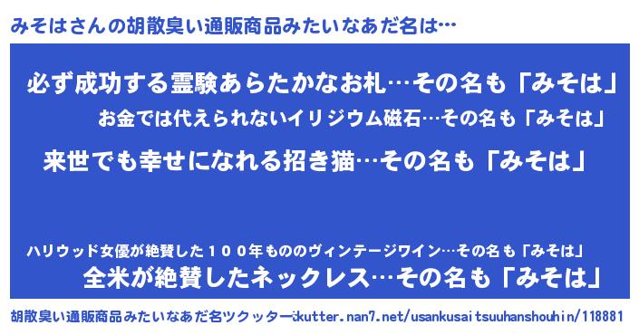 | ヘコむあだ名 | 『みそは(笑)』『みそふぇ~』 |