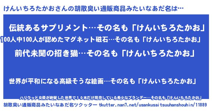| 伝説のあだ名 | 『古文書に記された吟遊詩人けんいちろたかお』 |