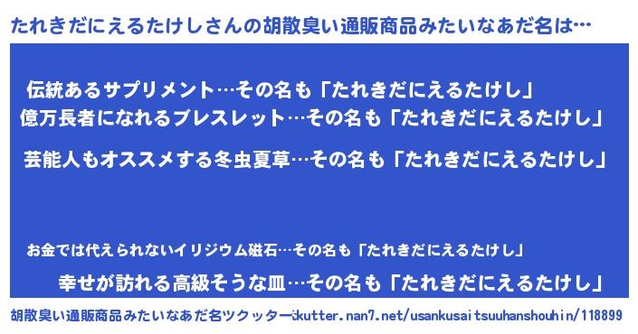 | 意味不明あだ名 | 『自称たれきだにえるたけし』 |