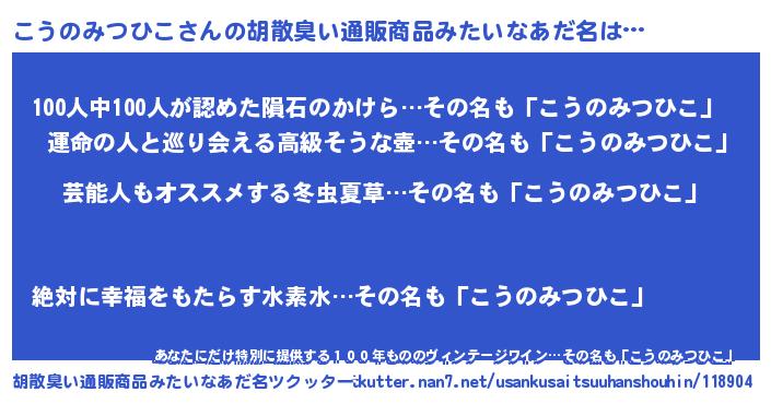 | 意味不明あだ名 | 『自称こうのみつひこ』 |