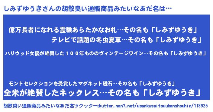 | 意味不明あだ名 | 『住所不定無職しみずゆうき(1歳)』 |