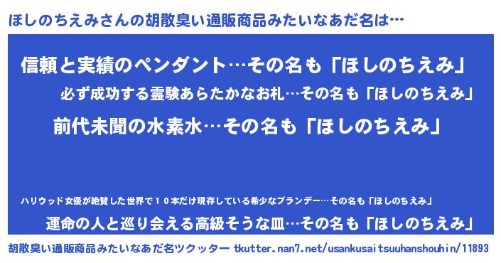 | ヘコむあだ名 | 『ほしのちえみ(苦笑)』『ほしを』 |