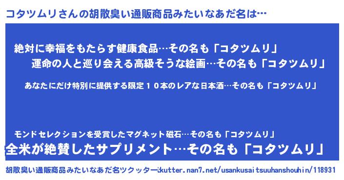| ことわざ | 壁に耳あり障子に目あり『壁にコタツムリ障子にコタツムリ』 |