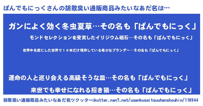 | 伝説のあだ名 | 『古より伝わる勇者ぱんでもにっく』 |